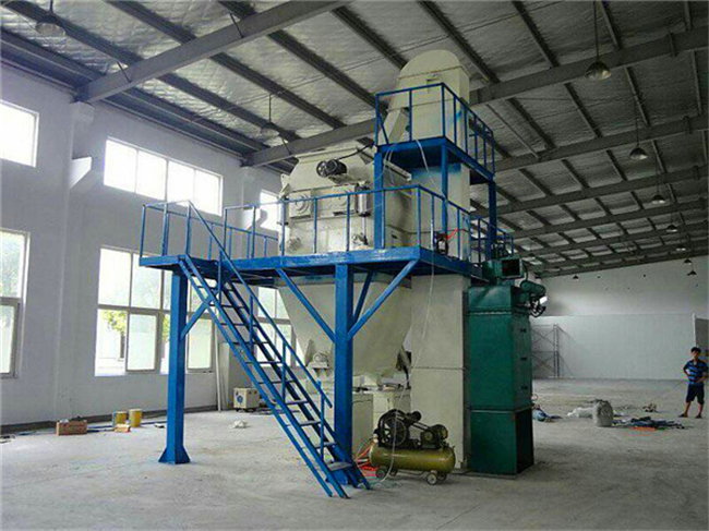 混合系統:可配套雙軸無重力漿葉式混合機、犁刀混合機混合機,具有混合速度快、混合精度高等優點,該機可攪拌1:10,00甚至更高的極限混合比。在攪拌漿葉合理的推動速度下,使聚苯顆粒、膠凝材料和化學添加劑等比重、粒度差異較大的物料,處于瞬間失重狀態,在拌筒內形成全方位對流、擴散和相互剪切,快速溫和地達到混合均勻的效果,不會產生偏析和破壞物料的原始狀態,確保了砂漿的保溫系數不會因保溫原料的形狀破壞而降低,確保了產品的保溫效果。