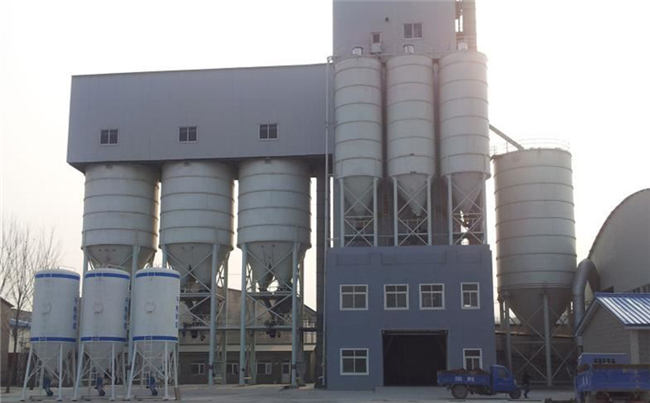 主要由提升輸送系統、計量配料系統、混合系統、儲料系統、包裝系統、除塵系統、控制系統、鋼架平臺等組成。