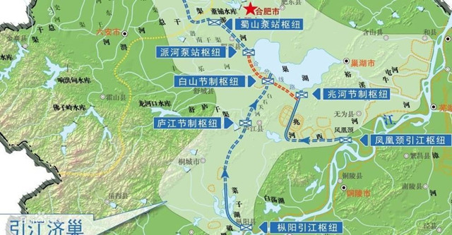 引江濟淮工程,被稱為安徽的"南水北調(diào)"工程。工程自南向北可劃分為引江濟巢、江淮溝通、江水北送三大工程段落,主要建設內(nèi)容包括輸水(通航)河道工程、樞紐建筑物、跨河建筑物和橋梁、影響處理工程等。工程于2016年全面開工,將于2022年試水試通航。屆時,引江濟淮工程將與正在建設的沙潁河、合裕線、蕪申運河航道一起,形成一條平行京杭運河的華東第二條南北水運主通道,貨物通過水路進入長江中上游將縮短300至400公里。