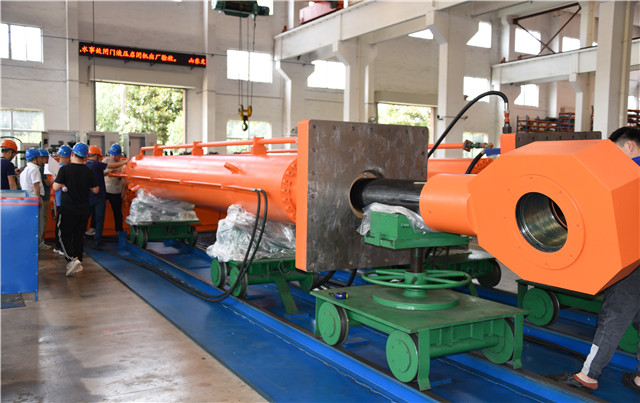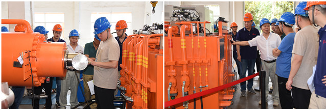 常州液壓承制了文登抽水蓄能電站泄洪放空洞工作閘門1臺/套液壓啟閉機,型號為QHSY-500/250kN-5.8M;尾水事故閘門6臺/套液壓啟閉機,型號為QPKY-4000/1000kN-5.6M。本次出廠驗收的設備型號為QPKY-4000/1000kN-5.6M。