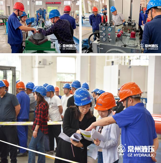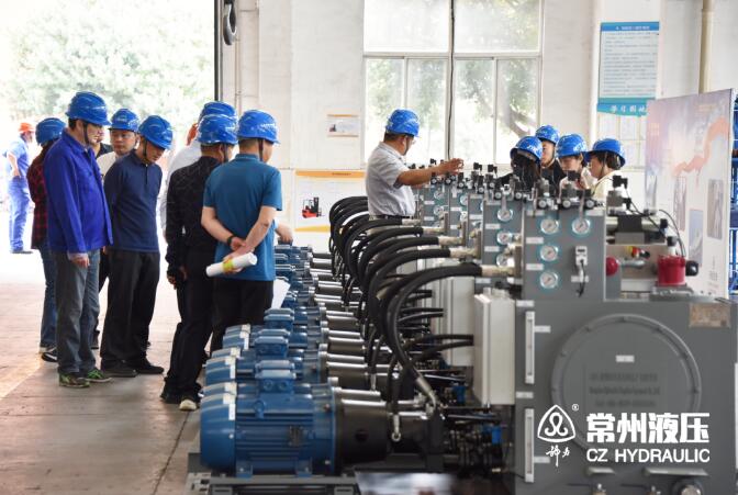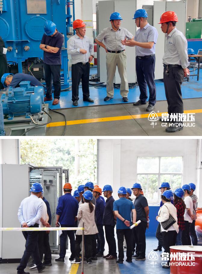 在南灣灌區平橋閘項目建設中,我司承制工作閘門液壓啟閉機設備多套,常州液壓相關人員陪同與會人員參觀了生產車間,了解了常州液壓的裝備能力及相關生產工藝。